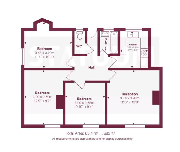 The property features three spacious double bedrooms, a bright separate reception room, a modern fully fitted kitchen, and a separate bathroom and WC — ideal for sharers or a family seeking comfort and privacy. The flat benefits from laminated wood flooring throughout, double glazing, and gas central heating, ensuring warmth and efficiency all year round. The décor has been freshly painted in a crisp white finish, giving the home a bright, contemporary feel.