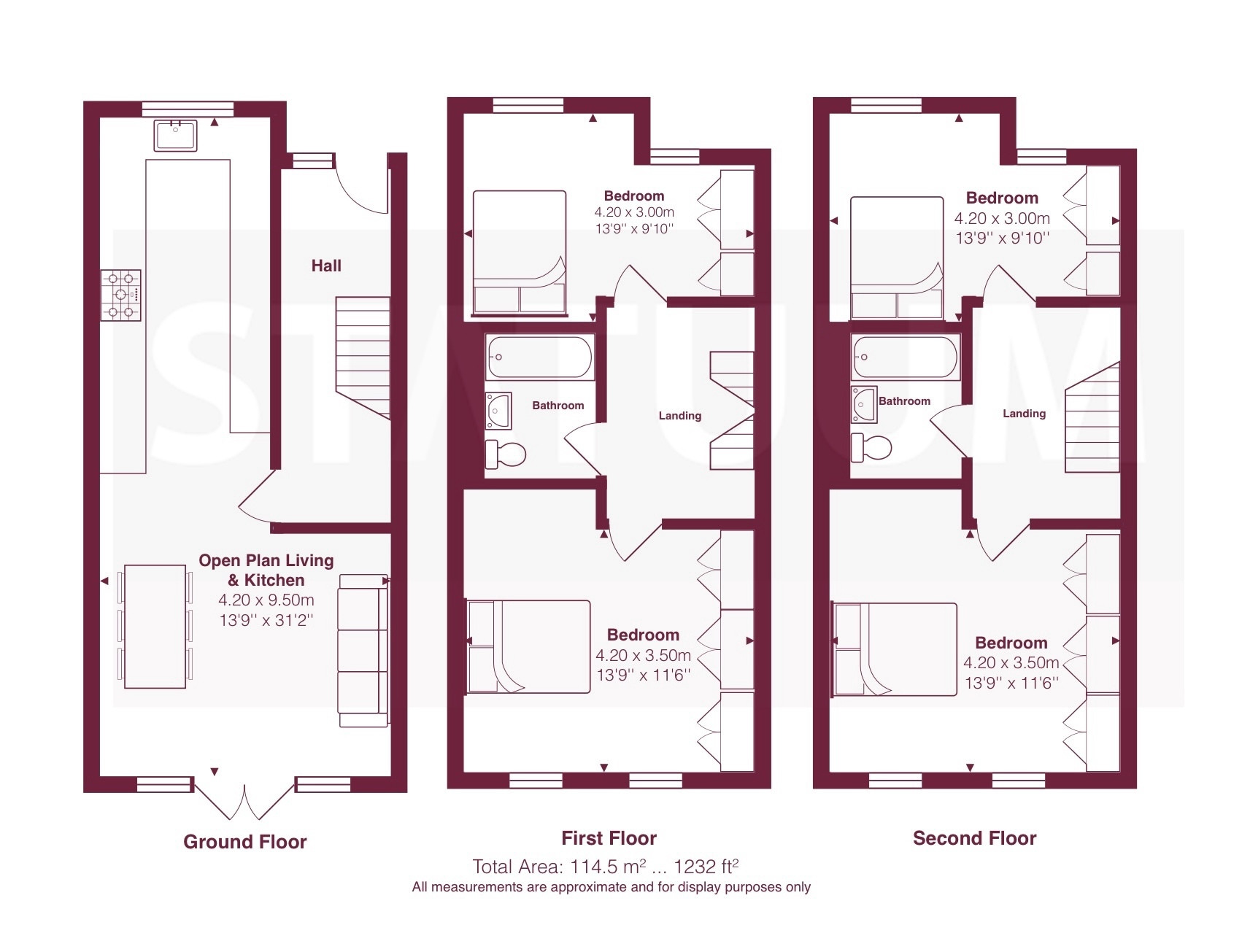 On the first floor, you will find two well-proportioned double bedrooms along with a family bathroom and landing area. The second floor mirrors this layout, offering two additional double bedrooms and a second bathroom, ensuring ample space and flexibility for growing families, guests, or home office use.