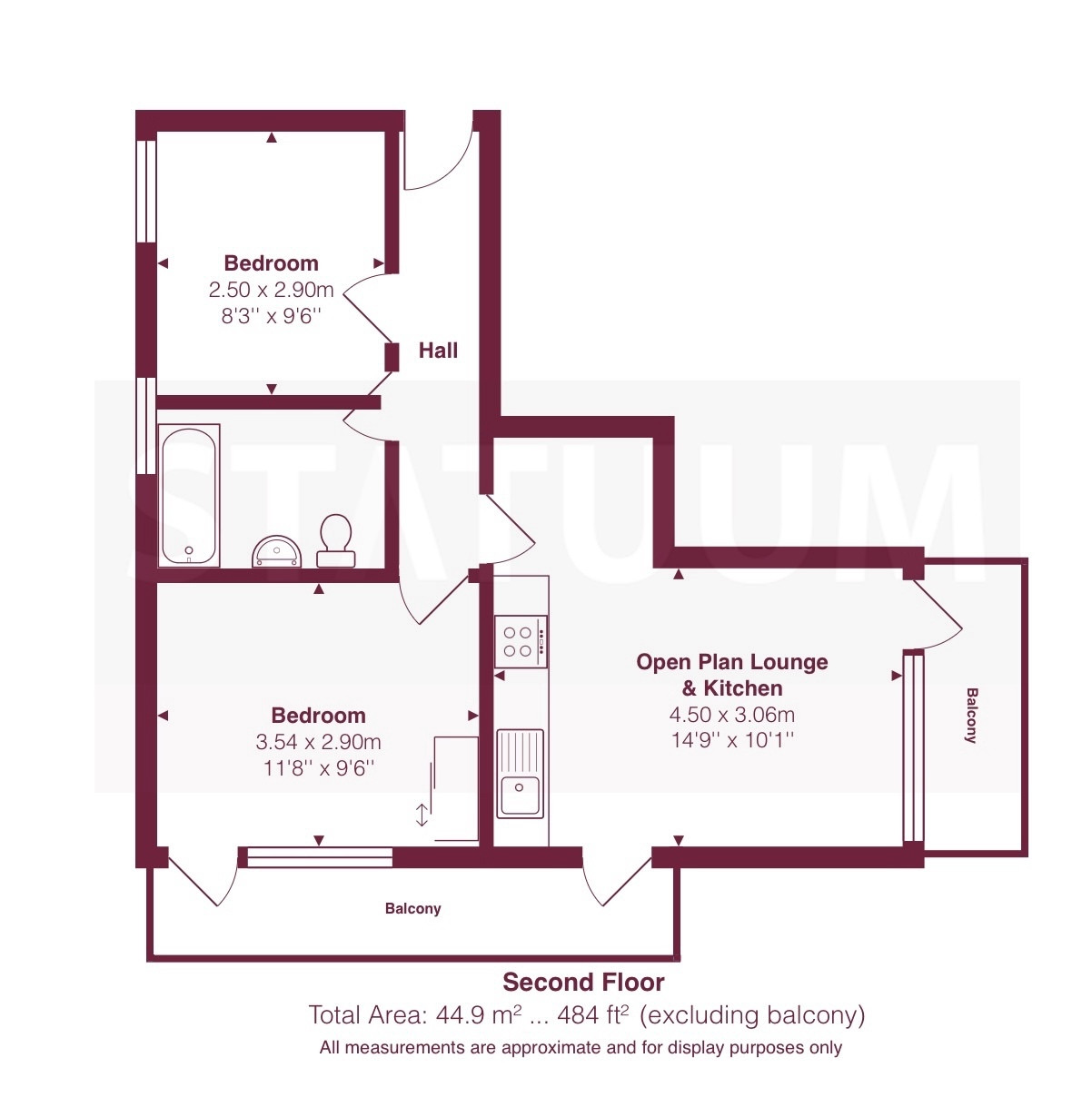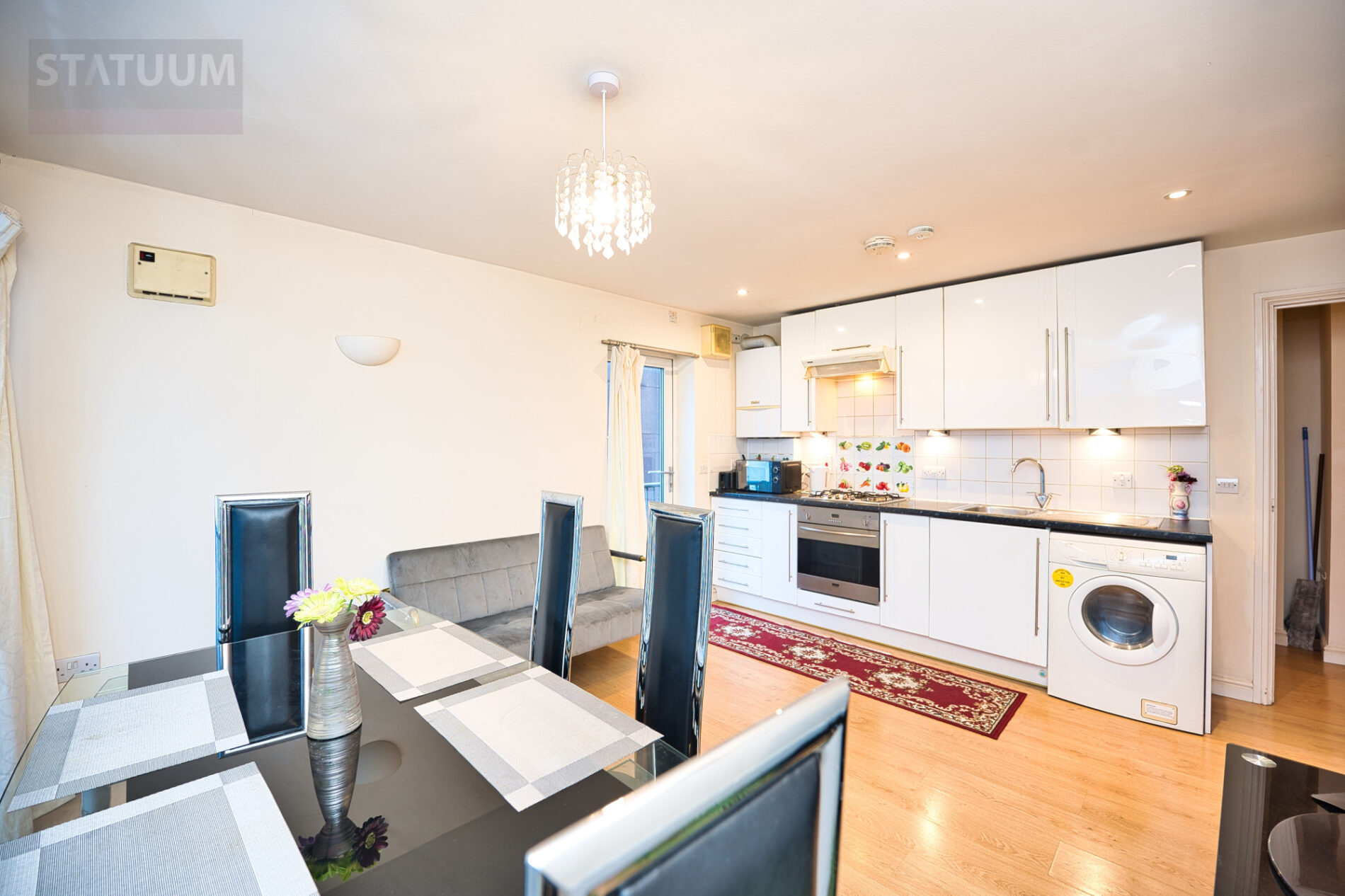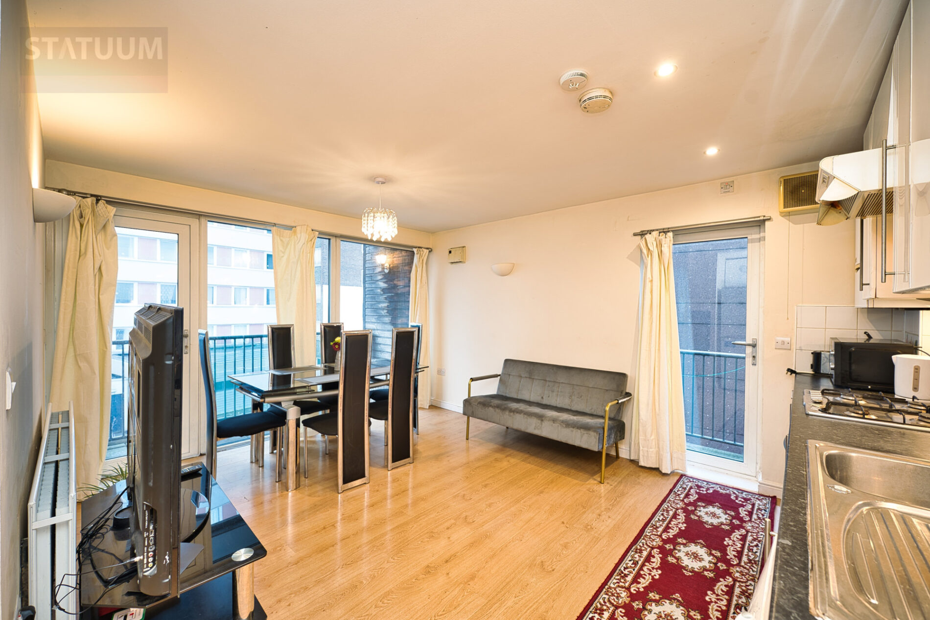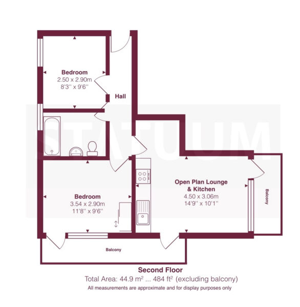 The property comprises a bright openplan lounge and kitchen, two bedrooms, and a contemporary bathroom. The layout is thoughtfully designed, with the main living area opening out onto a private balcony, and a second balcony/terrace accessible from the bedroom—providing excellent outdoor space and natural light throughout.