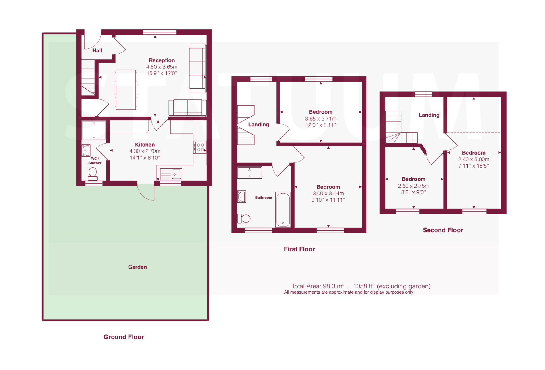 The ground floor features a bright and generous reception room, ideal for both relaxing and entertaining, alongside a modern fitted kitchen with ample storage and dining space. A convenient ground floor WC/shower room adds further practicality. To the rear, the property boasts a large private garden perfect for outdoor dining, family time, or entertaining guests.